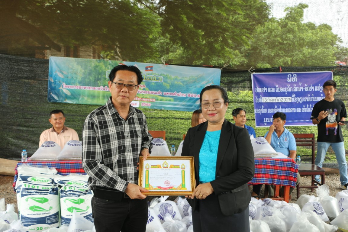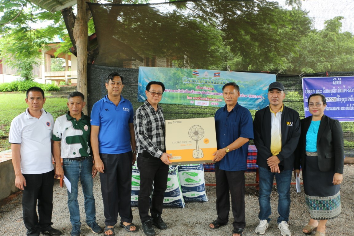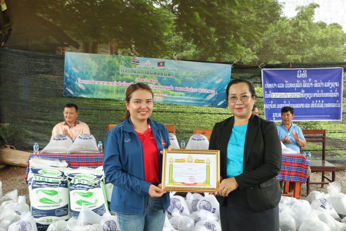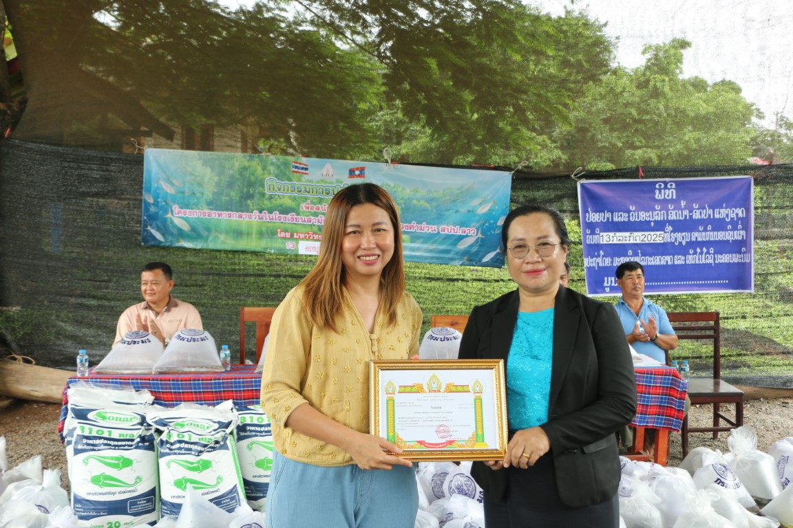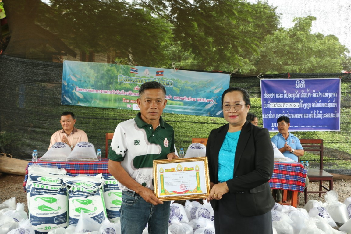 วันที่ 13 กรกฎาคม 2568 เวลา 09.00 น. ศาสตราจารย์เกียรติคุณ ดร.ธวัชชัย ศุภดิษฐ์ อธิการบดีมหาวิทยาลัยนครพนม พร้อมด้วยคณะผู้บริหารมหาวิทยาลัยนครพนม ผู้ช่วยศาสตราจารย์ ดร.เสาวคนธ์ เหมวงษ์ คณบดีคณะเกษตรและเทคโนโลยี คณาจารย์ และบุคลากร ร่วมกิจกรรมปล่อยปลาเนื่องใน วันปล่อยปลาแห่งชาติลาว ภายใต้โครงการเพิ่มศักยภาพการผลิตเกษตรแก่ศูนย์การเรียนรู้การเกษตรแนวเศรษฐกิจพอเพียง ณ โรงเรียนสามัญกินนอนชนเผ่า แขวงคำม่วน สาธารณรัฐประชาธิปไตยประชาชนลาว