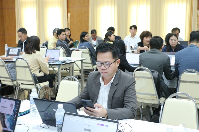 บรรยากาศการอบรมเต็มไปด้วยความสนใจและมีการแลกเปลี่ยนเรียนรู้เชิงวิชาการอย่างเข้มข้น สะท้อนถึงความมุ่งมั่นของมหาวิทยาลัยในการพัฒนาคุณภาพหลักสูตรให้ได้มาตรฐานระดับสากล
