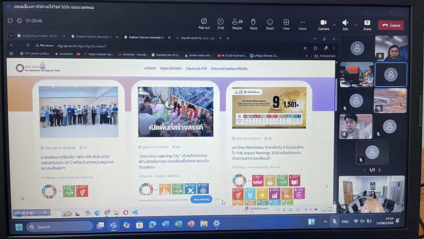 วันที่ 14 สิงหาคม 2568 เวลา 13.30น. มหาวิทยาลัยนครพนม จัดประชุมคณะกรรมการ NPU World University Rankings ร่วมกับเครือข่ายผู้ปฏิบัติงานประชาสัมพันธ์และสื่อสารองค์กรภายในมหาวิทยาลัยนครพนม (การประชุมในรูปแบบ Onsite และ Online) โดยมี ผู้ช่วยศาสตราจารย์ ดร.รุ้งลาวัลย์ เอี่ยมกุศลกิจ รองอธิการบดีฝ่ายกิจการพิเศษและประกันคุณภาพการศึกษา เป็นประธานการประชุม มี นายอภิชาติ จำปา นักวิชาการคอมพิวเตอร์ คณะกรรมการ NPU World University Rankings และผู้แทนจากหน่วยงานคณะ วิทยาลัย สำนัก และสถาบัน เข้าร่วมอย่างพร้อมเพรียง ณ ห้องแพงพนม ชั้น 4 สำนักงานอธิการบดี มหาวิทยาลัยนครพนม เขตพื้นที่ศรีโคตรบูรณ์
