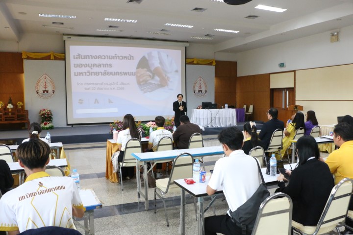 วันที่ 22 กันยายน 2568 เวลา 09.00 น. มหาวิทยาลัยนครพนม จัดโครงการกิจกรรมปฐมนิเทศบุคลากรใหม่ โดยมี ศาสตราจารย์เกียรติคุณ ดร.ธวัชชัย ศุภดิษฐ์ อธิการบดีมหาวิทยาลัยนครพนม เป็นประธานในพิธี พร้อมกล่าวเปิดโครงการ และให้เกียรติบรรยายพิเศษในหัวข้อ “นโยบายและทิศทางการบริหารสถาบันอุดมศึกษาในอนาคต” พร้อมด้วย ศาสตราจารย์ ดร.สุรสิทธิ์ วชิรขจร รองอธิการบดีฝ่ายบริหารทรัพยากรมนุษย์ เข้าร่วมกิจกรรมร่วมกับบุคลากรใหม่ ณ ห้องพนมนาคา ชั้น 5 สำนักงานอธิการบดี มหาวิทยาลัยนครพนม เขตพื้นที่ศรีโคตรบูรณ์