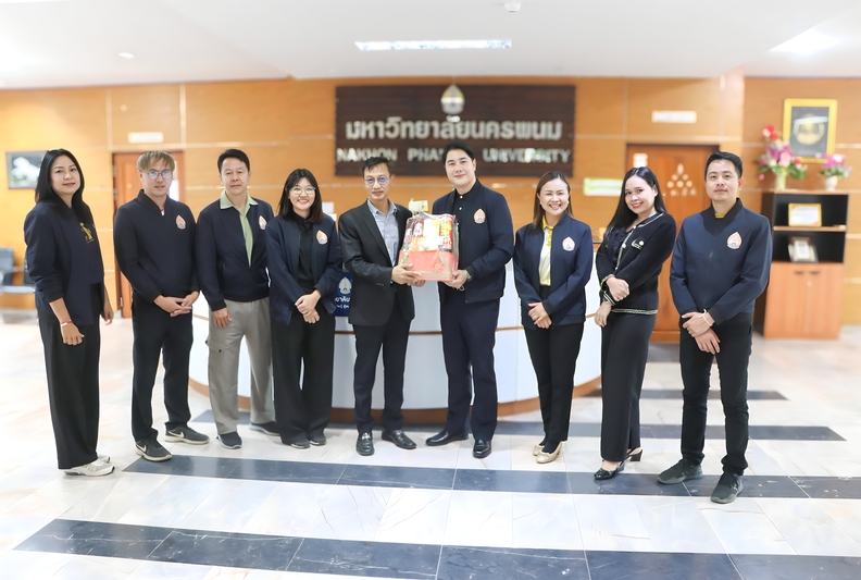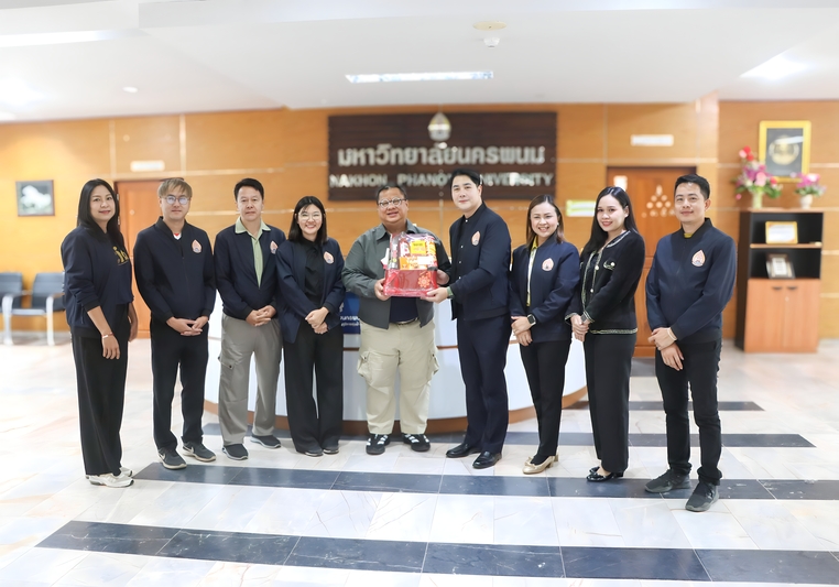 วันที่ 5 มกราคม 2569 เวลา 09.00 น. ดร.กันตภพ บัวทอง ผู้ช่วยอธิการบดี ฝ่ายสื่อสารองค์กรและวิเทศสัมพันธ์ พร้อมด้วยบุคลากรแผนกสื่อสารองค์กรและวิเทศสัมพันธ์ เข้าสวัสดีปีใหม่ ศาสตราจารย์เกียรติคุณ ดร.ธวัชชัย ศุภดิษฐ์ อธิการบดีมหาวิทยาลัยนครพนม และคณะผู้บริหารมหาวิทยาลัยนครพนม เนื่องในโอกาสขึ้นปีใหม่ พ.ศ. 2569 ณ อาคารสำนักงานอธิการบดี 1 (เขตพื้นที่ศรีโคตรบูรณ์) ต.ขามเฒ่า อ.เมือง จังหวัดนครพนม