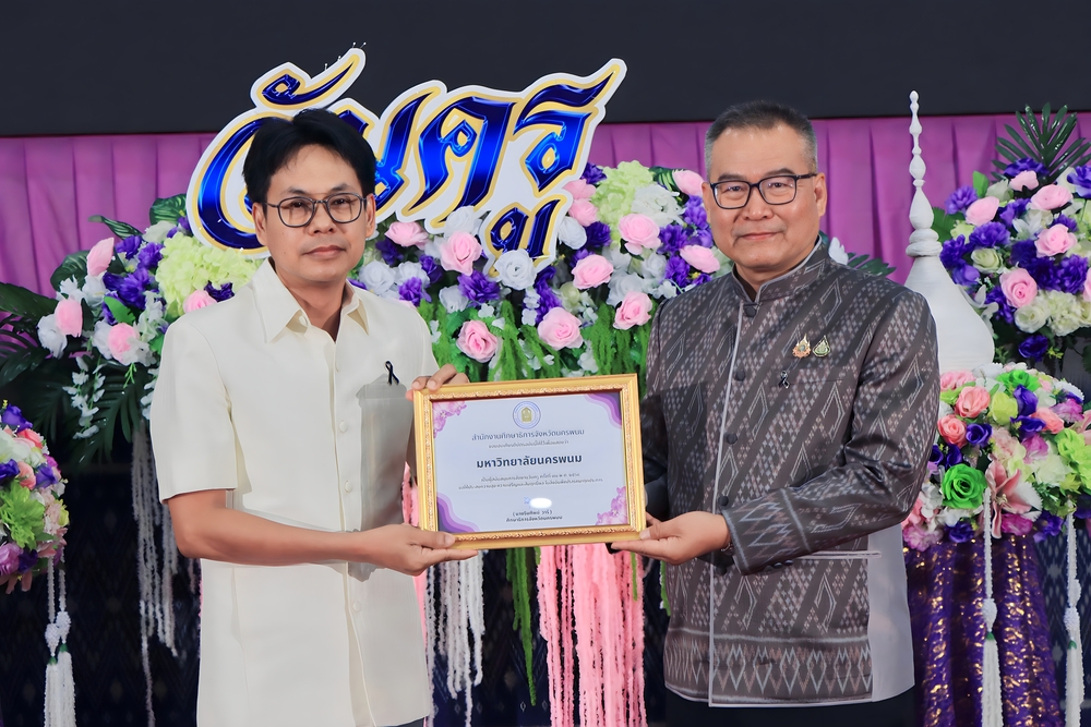 วันที่ 16 มกราคม 2569 ผู้ช่วยศาสตราจารย์ ดร.ปรัชญา ธงพานิช ผู้ช่วยอธิการบดีฝ่ายสารสนเทศและการศึกษาสมัยใหม่ มหาวิทยาลัยนครพนม พร้อมด้วย ผู้ช่วยศาสตราจารย์ ดร.จักรพันธ์ จันทร์เจริญ รองคณบดีฝ่ายโรงเรียนสาธิตแห่งมหาวิทยาลัยนครพนม พนมพิทยพัฒน์ และ ดร.สุภาวดี กาญจนเกต ผู้ช่วยคณบดีฝ่ายบัณฑิตศึกษา คณะครุศาสตร์ เข้าร่วมงานวันครู ครั้งที่ 70 พุทธศักราช 2569 และโอกาสนี้ มหาวิทยาลัยนครพนม ได้รับเกียรติบัตรหน่วยงานที่ให้การสนับสนุนการจัดงานพิธีวันครู ครั้งที่ 70 พุทธศักราช 2569 ณ ห้องประชุมหนองบึก 1 ศูนย์ประชุมหนองบึก ชั้น 3 สหกรณ์ออมทรัพย์ครูนครพนม จำกัด